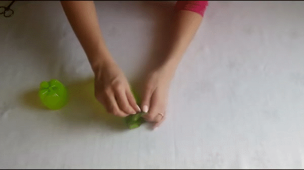 Bước 3: Kéo chiếc khóa ra, rải keo vào vỏ chai thứ 2 rồi gắn vào khóa kéo.